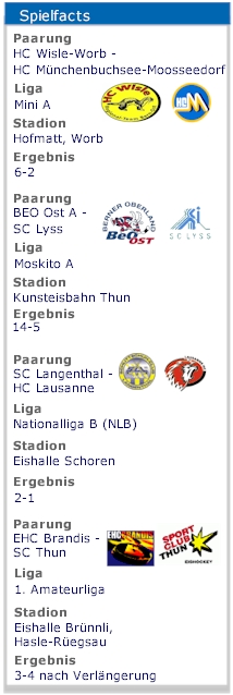 Ausgangspunkt war wieder einmal Ladenburg. Zur frühen Stunde (9.00 Uhr) sammelte ich Chango, Niggl und Thomas auf und los ging es nach Worb (kurz hinter Bern). Pünktlich zum zweiten Drittel kamen wir in Worb bei unserer ersten Station an. Immer wieder faszinierend ist die technische Beschlagenheit aller Eishockeyspieler in der Schweiz. Egal, ob Profi oder Amateur, jung oder alt, die können alle mit dem Schläger umgehen, Pässe spielen und annehmen, und checken darüber hinaus jeden Gegenspieler. Auch das Spiel in Worb war durchaus anschaulich. Es endete vor ca. 100 Zuschauern mit 6:2 für Wisle-Worb. Jetzt hatten wir Luft bis zu unserem nächsten geplanten Spiel in Langenthal. So machten wir uns auf die Suche nach einem weiteren Eishockeyspiel und passierten dabei das kleine Dörfchen Wichtrach. Hier werden im Sommer immer sehr viele Vorbereitungsspiele ausgetragen (u.a. vom SC Bern). Ein Blick in die Halle verriet uns, dass ein Kleinfeldturnier der Bambinis veranstaltet wurde. Unser nächstes Ziel war Thun, allein schon wegen der Stadt. Dort angekommen entdeckten wir die Eisfläche und zu unserem Glück wurde auch hier gespielt. Beim Stand von 5:5 nach 25. gespielten Minuten nahmen wir auf der Tribüne im schmucken Stadion platz und sahen ab diesem Zeitpunkt nur noch Tore von BEO Ost. Das Spiel endete dann auch mit 14:5 für die Spielgemeinschaft Berner Oberland Ost. Bei diesem Spiel war meine Formkurve im Keller und ich war kurz vor dem Einschlafen - Groundhopping ist halt doch anstrengend. Nach diesem Spiel ging es zum Höhepunkt des Tages nach Langenthal. Provinzkaff mit Zweitligaeishockey. Fast so schlimm wie in Ambri. Hier ist Samstag-Abend das Eishockey noch Hauptattraktion. Die Massen schieben sich den Berg in Richtung Stadion rauf. aber auch hier ist wie in der gesamten Schweiz festzustellen, dass die Zuschauer erst relativ kurz vor Spielbeginn sich im Stadion einfinden. Zum Essen und Punschtrinken haben wir uns hinter das Tor zu den Gästefans gestellt. Kurz vor Spielbeginn haben wir aber nochmals gewechselt. Auf der Seite im gegnerischen Angriffsdrittel konnte man ca. 3 Meter vor der Bande stehen. Plexiglas oder Netze gab es keine - es hieß also Augen auf im Straßenverkehr! Das Spiel war eher kampfbetont, aber ansehnlich. Nach einem offenen Anfang erzielten schließlich die Hausherren vor 2.194 Zuschauern in der 11. Minute das 1:0. Nach diesem Treffer nahm der SC Langenthal das Spiel in die Hand verpasste es aber, die Führung zu erhöhen. Erst in der 32. Minute konnte Moser das 2:0 schießen. Das Spiel war fast schon gelaufen, da von Seiten Lausanne nichts kam. Erst im Schlußabschnitt bemühten sie sich wieder und konnten den Anschlußtreffer in der Schlußminute markieren. Die heiße Schlußphase überstand der SC Langenthal aber und konnte das Spiel verdient mit 2:1 gewinnen. Auf dem Weg zum Auto trafen wir dann einen Heidelberger, der freiwillig in die Schweiz gezogen ist und sich das Spiel ebenfalls ansah. Kleine Welt... Ca. 30 Kilometer südlich von Langenthal wollten wir das Spiel des EHC Brandis gegen den SC Thun sehen, wussten aber nicht, ob es eine Freifläche oder eine Halle ist. Wir hatten Glück, die Eisfläche musste frisch überdacht worden sein. Allerdings gab es keine Sitzplätze, auch auf der Empore musste man stehen. Zwei Minuten waren im 2.Drittel gespielt und es stand 1:0 für den EHC Brandis. Auch in der ersten Amateurliga ist das Hockey ansehnlich. Der EHC Brandis war optisch überlegen und spielte mit der Zeit eine 3:1 Führung heraus. Nachdem wir 31 Minuten gesehen hatten, machten wir uns nach 54. gespielten Minuten auf den Heimweg. Beim Verlassen des Stadions hörten wir noch zweimal den Jubel der Zuschauer. Wir verpassten 2 Tore der Gäste und eine anschließende Verlängerung, in der die Gäste sogar den Sieg davon trugen. Da wir bereits auf dem Weg in die Schweiz an der Grenze ausgiebig kontrolliert wurden und der Zöllner am Abend die Seite wechselte, erkannte er uns wieder und wir konnten weiterfahren, um eine Tradition zu pflegen: Abendessen im Pizza-Hut. Mahlzeit. |